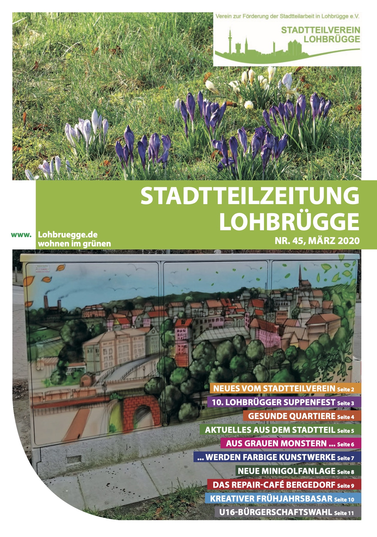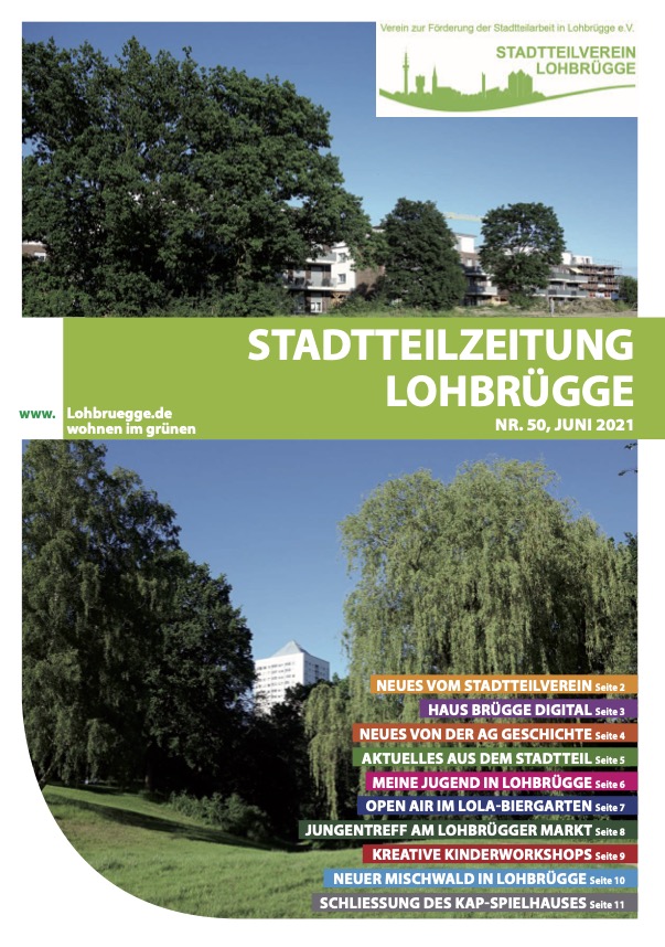 Die Stadtteilzeitung Lohbrügge erscheint zur Zeit drei Mal im Jahr mit einer Auflage von 10.000 Exemplaren und wird an nahezu alle Haushalte in den Gebieten Lohbrügge-Nord und Lohbrügge-Ost verteilt. Darüber hinaus ist sie auch im Haus brügge, im KiFaz und in anderen Einrichtungen im Stadtteil kostenlos erhältlich. Die Finanzierung der Stadtteilzeitung wird durch die auf unserer Seite genannten Gesellschaften, unter der Rubrik Wohnungsunternehmen, gewährleistet.